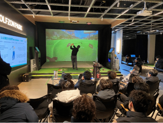 为深化产教融合,全面提升学生专业实践能力,2026年1月15日,体育学院领导带领体育经济管理教研室5名教师以及2025级体育经济与管理专业、运动训练专业学生走进高尔夫·尊(GOLFZON)俱乐部,开展“小学期”实践能力培养活动。
