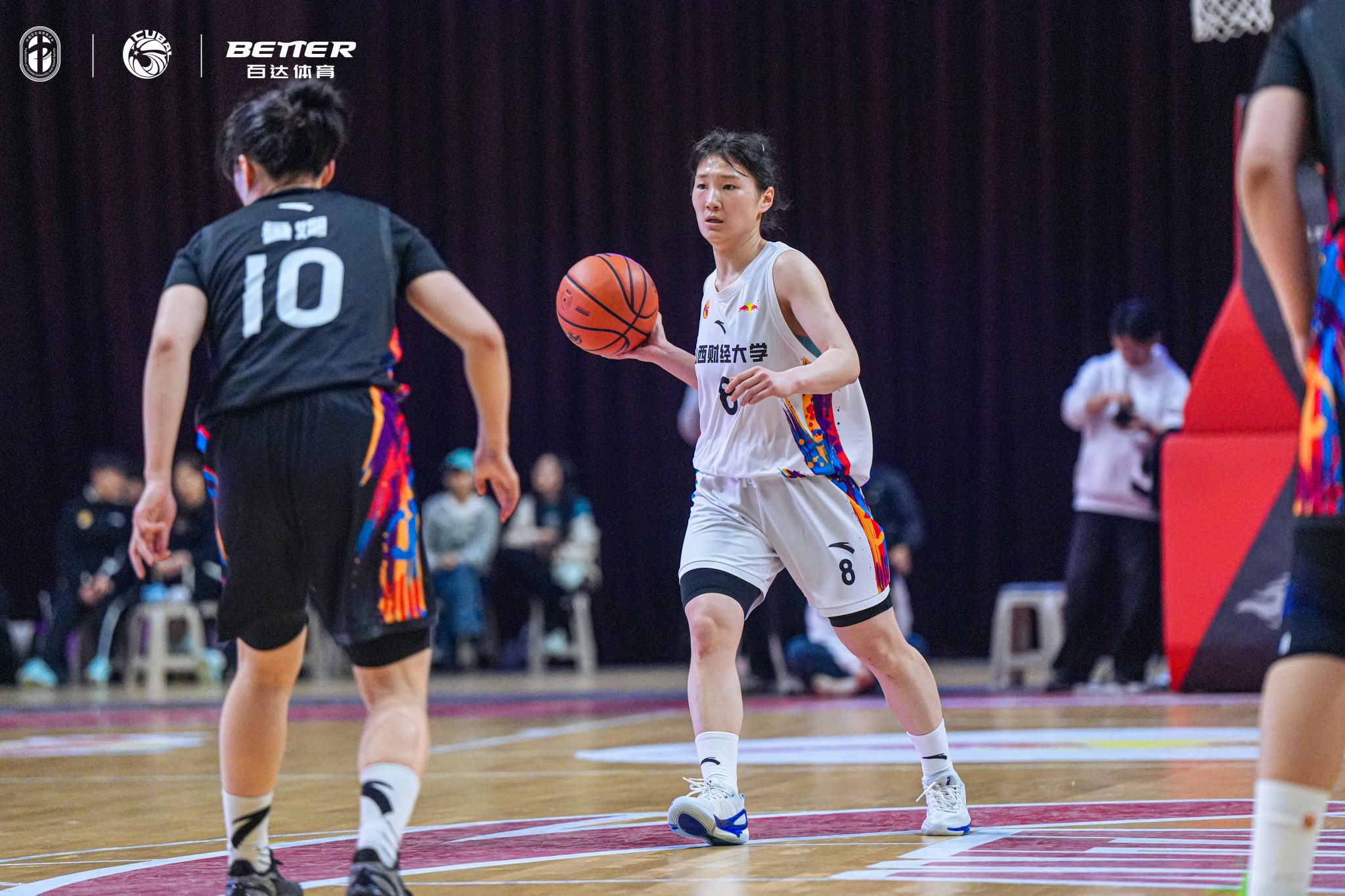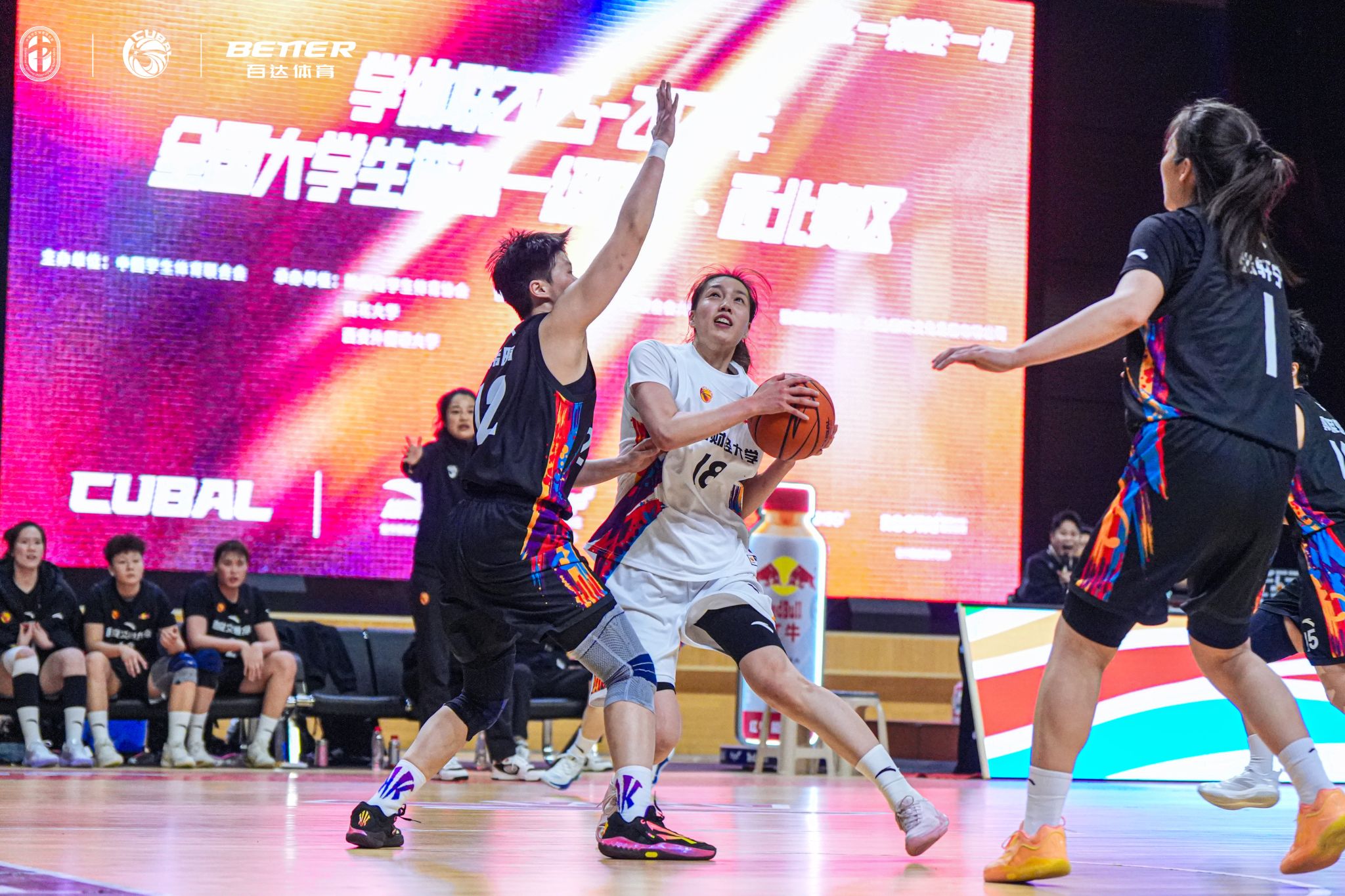 进入第二节,我校女篮针对性加强外线防守,同时利用灵活突破与中距离投篮打开进攻节奏,单节打出16-12的比分,成功将分差大幅缩小。这一节里,姑娘们用严密的防守限制了对手的进攻火力,也用一次次精准的出手向对手发起反击,让现场观众看到了山财女篮的调整能力与不服输的拼劲。